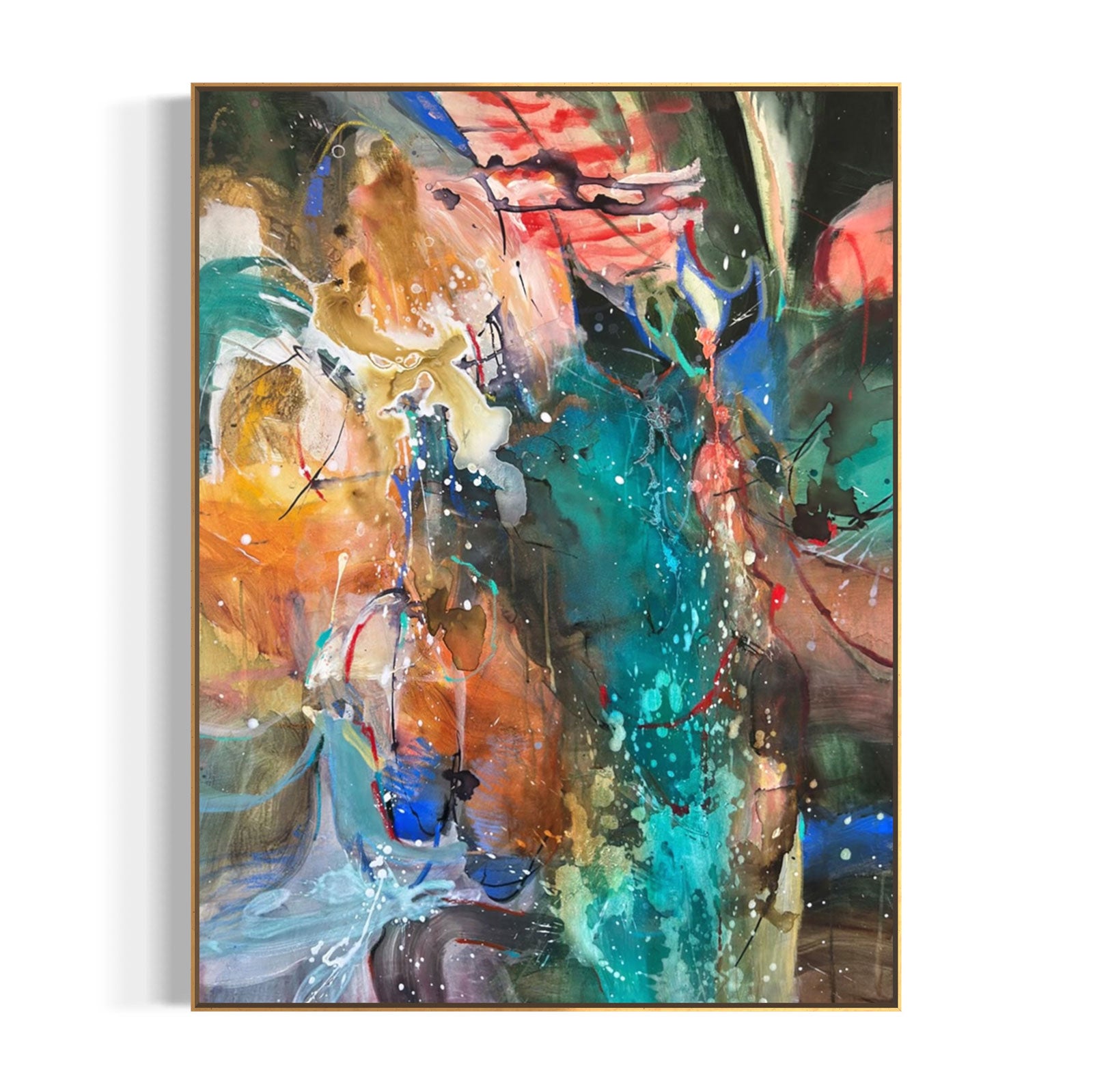 A painting shaped by longing and quiet intensity. Deep tones and flashes of light move through the composition like fragments of emotion: restless, layered, tender. It speaks to distance and connection, to the way absence can shimmer with presence. A piece for those who’ve ever felt something deeply, even in silence.