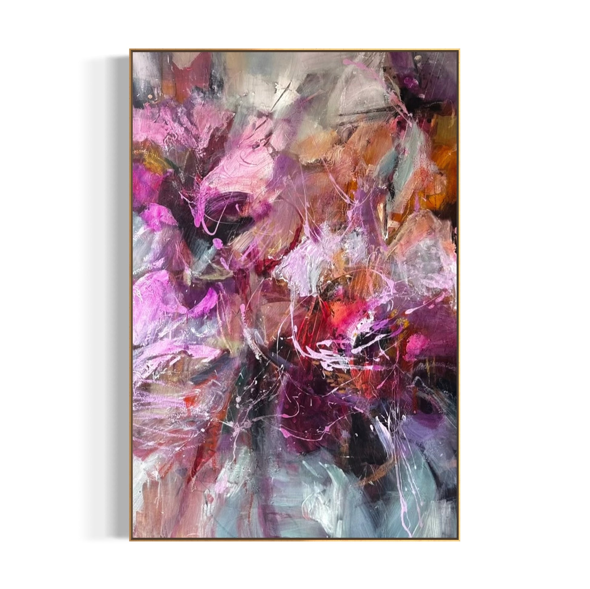 This piece holds a special place in my heart—like fleeting moments when emotions bloom and swirl all at once. Soft pinks and purples weave through gentle grays, capturing that delicate balance between calm and chaos we all carry inside. Each brushstroke feels like a whispered memory, alive and moving, inviting you to lose yourself in the beautiful, unpredictable dance of feeling and nature.