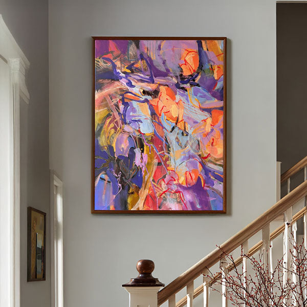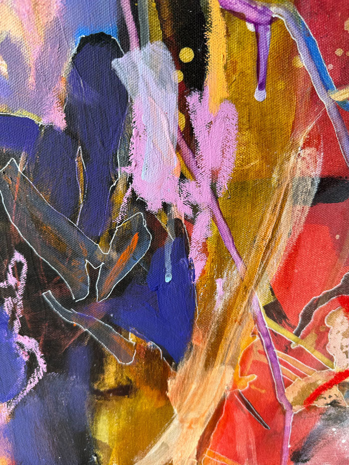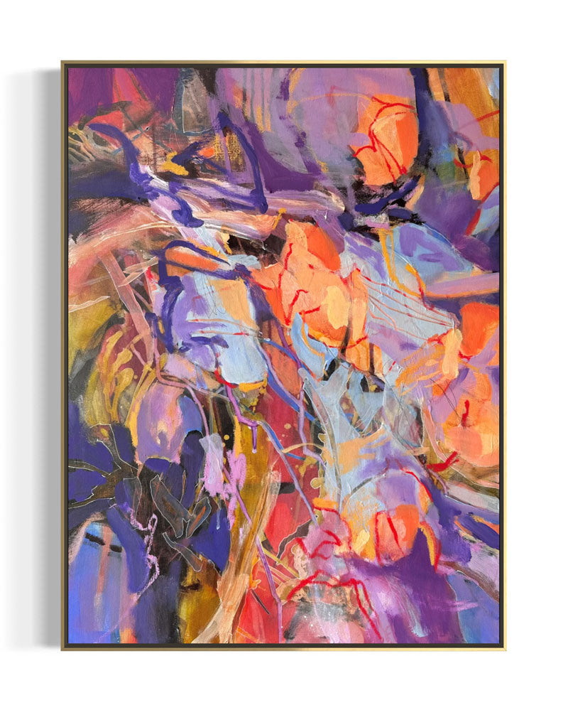A luminous, layered abstract in acrylic and oil pastel. Sweeping brushwork and soft glazes create warmth and movement made to bring light and a gentle energy into your space.